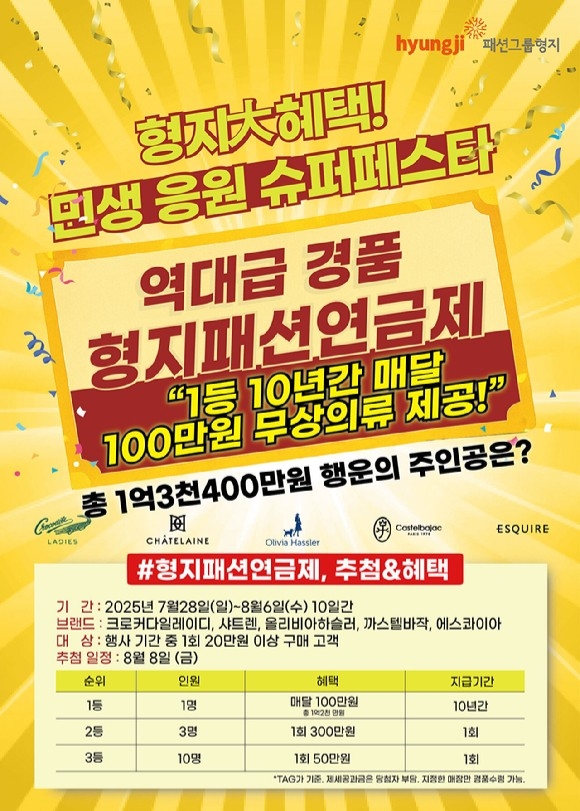 형지 관계자는 “정부의 민생회복 소비 정책에 발맞춰 소비 심리 회복에 기여하고, 고객들에게 실질적인 쇼핑 혜택을 제공하기 위해 이 같은 프로모션을 기획했다”며 “단순 할인에서 나아가 고객의 일상 속에서 브랜드가 함께하는 경험을 제공하고자 한다”고 전했다.