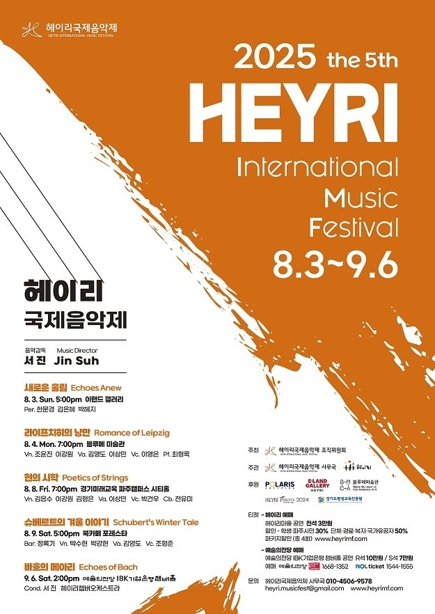 서진 음악감독은 “헤이리 국제음악제는 단순한 음악 축제를 넘어, 예술과 일상이 맞닿은 공간 안에서 음악이 어떻게 공명하고 확장될 수 있는지를 보여주는 현장”이라며 “이번 무대를 통해 연주자와 청중 모두가 깊이 있게 연결되는 경험을 함께하길 바란다”고 전했다.