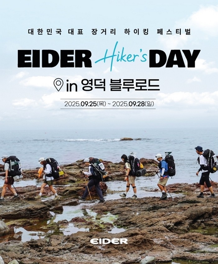 아웃도어 브랜드 아이더가 오는 9월 25일부터 28일까지 경북 영덕 블루로드 일대에서 ‘2025 아이더 하이커스데이’를 개최한다고 밝혔다. 이번 행사는 국내 걷기 여행 명소인 둘레길을 알리고 건강한 하이킹 문화를 확산시키기 위한 ‘아이더로드’ 캠페인의 일환으로 기획됐다.
