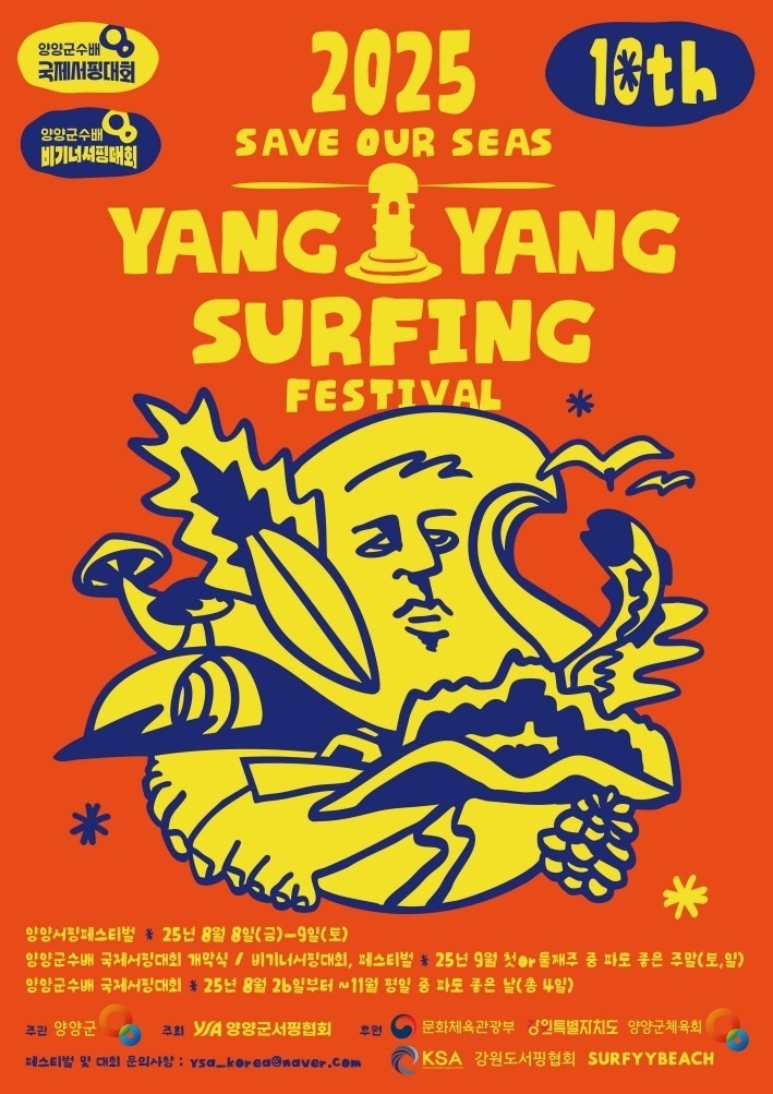 강원 양양군은 오는 8~9일 양양 중광정리 서피비치에서 ‘2025 양양 서핑페스티벌’을 개최한다고 밝혔다. 올해로 10회를 맞는 이번 행사는 서핑과 해변 문화, 공연이 어우러지는 양양의 대표 여름 축제로, 국내외 서퍼들의 관심을 모으고 있다.