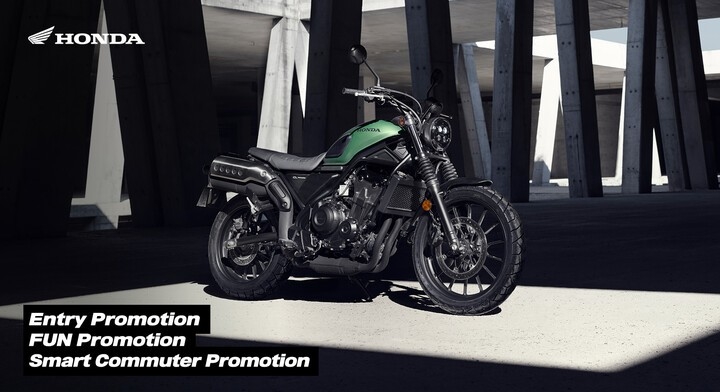 중대형급 ‘펀 모델 프로모션’은 CL500, NT1100, 레블1100(MT·DCT·SE), CBR500R, 레블500 등 총 7개 모델에 적용된다. 이들 모델은 24개월 제휴금융 무이자 할부 또는 모델별 60만~140만 원의 할인 혜택 중 선택할 수 있다. 특히 CL500, CBR500R, 레블500은 엔트리 지원 프로모션과 중복 적용 가능하며, CL500 구매 시에는 60만 원 상당의 용품 지원금도 추가로 제공된다.
