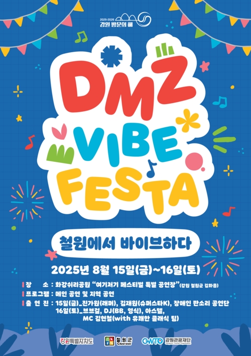 강원도와 철원군, 강원관광재단, 강원창조경제혁신센터가 오는 15~16일 철원 화강 쉬리캠핑장에서 ‘DMZ 바이브 페스타: 여기저기 페스티벌 in 철원’을 열고 2025~2026 강원 방문의 해와 ‘DMZ 평화의 길 관광 활성화 사업’의 본격적인 서막을 연다.