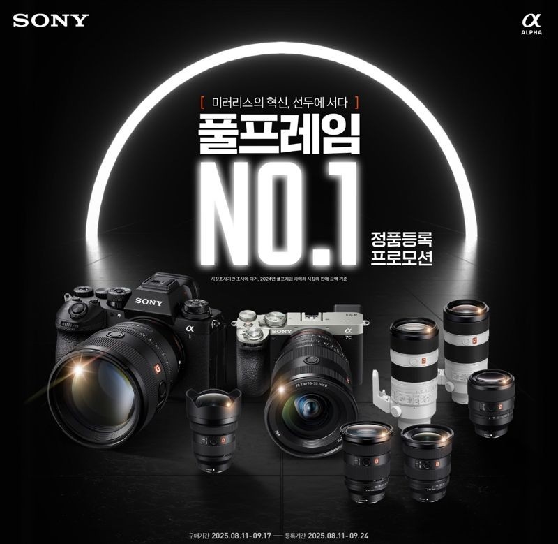 소니코리아가 풀프레임 미러리스 카메라 시장 12년 연속 1위 달성을 기념해 다음 달 17일까지 정품등록 프로모션을 진행한다고 11일 밝혔다. 이번 행사에는 알파 1 II, 알파 9 III 등 플래그십 카메라와 GM2 트리니티(SEL1635GM2, SEL2470GM2, SEL70200GM2)를 비롯한 다양한 고성능 제품이 포함된다.