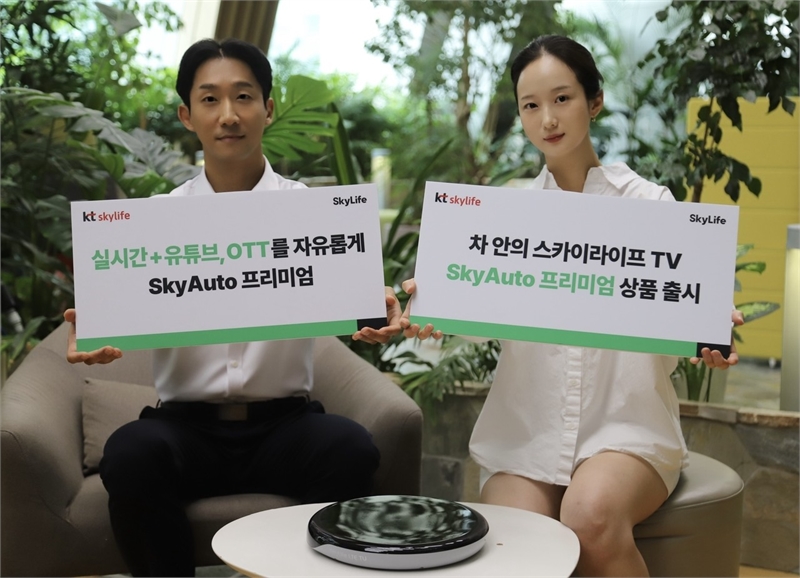 KT스카이라이프는 KT와 함께 국내 이동형 미디어 시장을 겨냥한 ‘스카이오토 프리미엄’ 상품을 출시한다고 밝혔다. 스카이오토는 2017년 처음 선보인 하이브리드 서비스로, KT스카이라이프의 위성방송과 KT의 무선 데이터를 결합해 터널 등 위성 신호 수신이 어려운 지역에서도 끊김 없는 미디어 서비스를 제공하는 것이 특징이다.