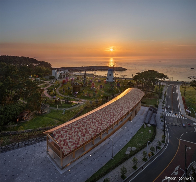 간절루는 KG스틸과 김범관 울산대 디자인건축융합대 교수가 협업해 조성한 공간으로, 떠오르는 해를 형상화한 곡면 지붕과 일출의 따스한 색감을 반영한 외관 디자인이 특징이다. 외장재로 사용된 ‘X-TONE’은 해안 지역 기후 특성을 고려한 고내후성 불소 알루미늄 강판으로, 강한 바닷바람과 염분에도 변색과 부식에 강하다.