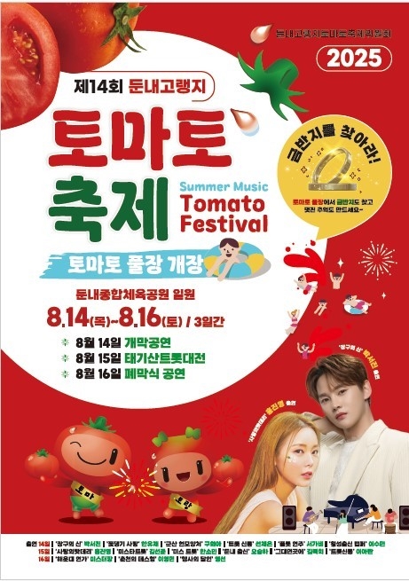 강원 횡성군 둔내면에서 여름 대표 가족 축제인 ‘제14회 둔내고랭지토마토축제’가 오는 14일부터 16일까지 둔내종합체육공원 일원에서 열린다. 올해 축제는 ‘와∼ 놀자! 둔내고랭지토마토랑!’을 주제로 기존 인기 프로그램과 함께 체험형 콘텐츠를 대폭 확대했으며, 폭염 대비 시설도 강화해 보다 시원하고 쾌적한 환경을 제공할 예정이다.