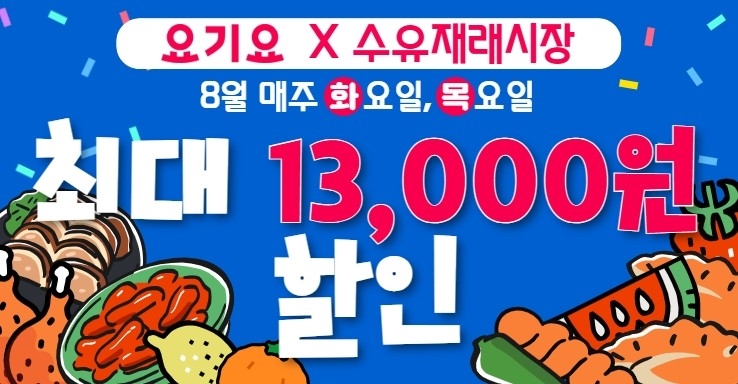 서울 강북구가 대표 전통시장인 수유재래시장의 국내 배달 플랫폼 ‘요기요’ 입점을 기념해 오는 8월 31일까지 초특가 할인행사를 연다. 이번 행사는 강북구, 중소벤처기업부, 소상공인시장진흥공단, 서울시가 함께 추진하는 ‘디지털전통시장 육성사업’의 일환이다.