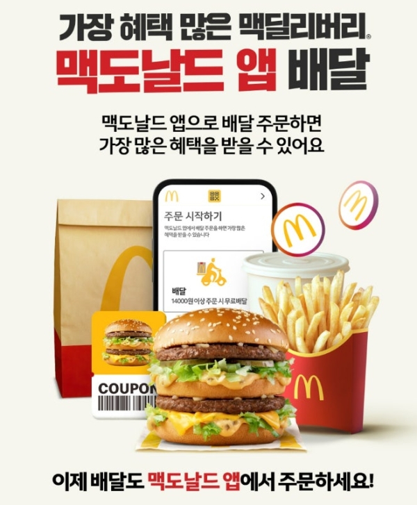 맥도날드는 지난 6월 배달 전용 앱 ‘맥딜리버리’와 홈페이지 배달 주문 기능을 공식 앱에 통합했다. 이를 통해 배달 고객도 결제 금액 100원당 5포인트 적립 등 앱의 기존 혜택을 동일하게 받을 수 있으며, 최소 배달 주문 금액을 업계 최저 수준인 8000원으로 책정했다. 또한 1만4000원 이상 주문 시 무료 배달을 적용하는 등 이용 편의성을 강화했다.