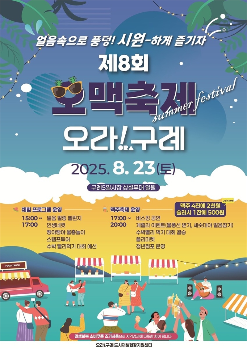 부대 프로그램으로는 오후 3시부터 얼음 컬링 챌린지, 물총놀이, 수박 빨리 먹기 예선이 진행되며, 오후 5시부터는 버스킹 공연과 플리마켓(벼룩시장)이 열려 다채로운 볼거리를 제공한다.