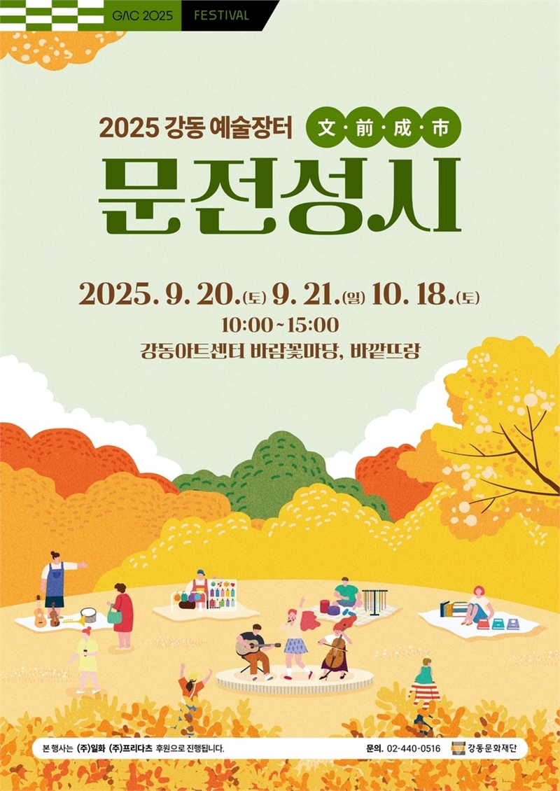 강동문화재단은 이번 장터가 “지역 예술과 주민이 함께 어우러지는 소통의 장이자, 가을의 특별한 추억을 만드는 시간이 될 것”이라며 많은 관심과 참여를 당부했다.