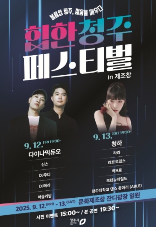 이범석 청주시장은 “청주시가 가을 주말을 맞아 시민들에게 또 하나의 즐거움을 선사하고자 이번 행사를 준비했다”며 “세대와 지역을 아우르는 문화의 장이자, 청년 문화가 꽃피는 무대가 되길 바란다”고 말했다.