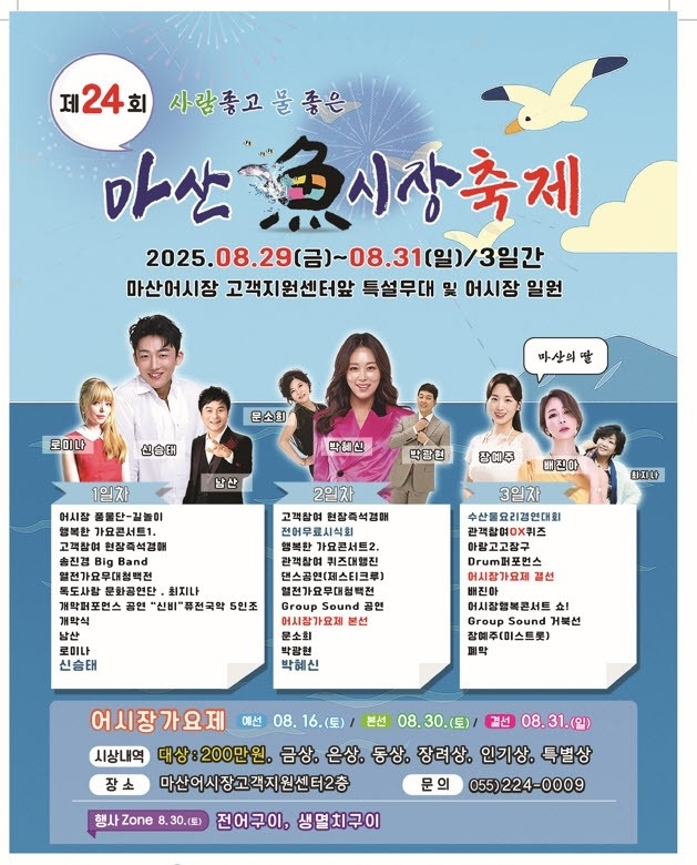 경남 창원시는 제24회 마산어시장 축제를 29일부터 31일까지 마산어시장 고객지원센터 특설무대와 어시장 일대에서 개최한다고 밝혔다. 마산어시장상인회가 주최·주관하는 이번 행사는 지역 대표 전통시장의 활기를 시민과 함께 나누는 축제다.