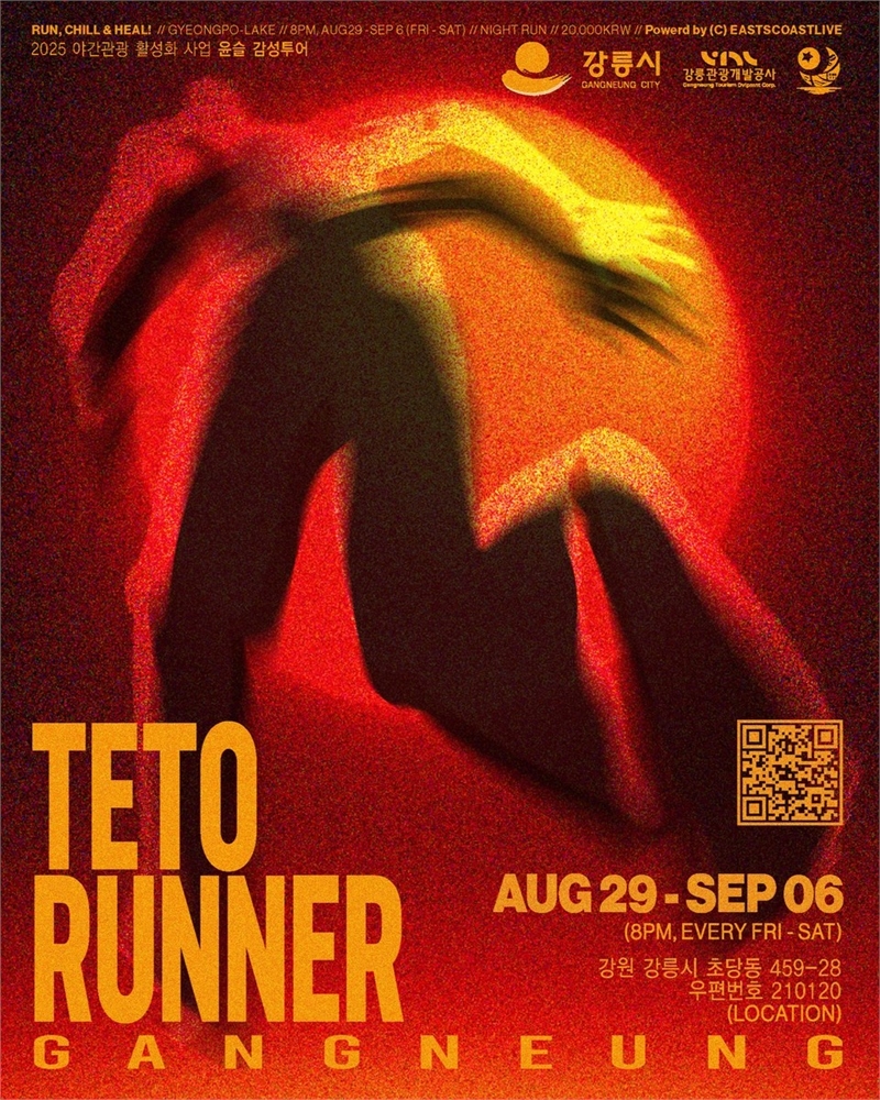 강원 강릉시와 강릉관광개발공사는 오는 29일 경포호수 공원 일원에서 윤슬 감성투어 ‘테토러너’를 개최한다고 밝혔다. 이번 행사는 최근 유행하는 신조어 ‘테토’를 모티프로 파워풀한 에너지와 경쟁심, 액티브한 감성을 주제로 구성됐다.