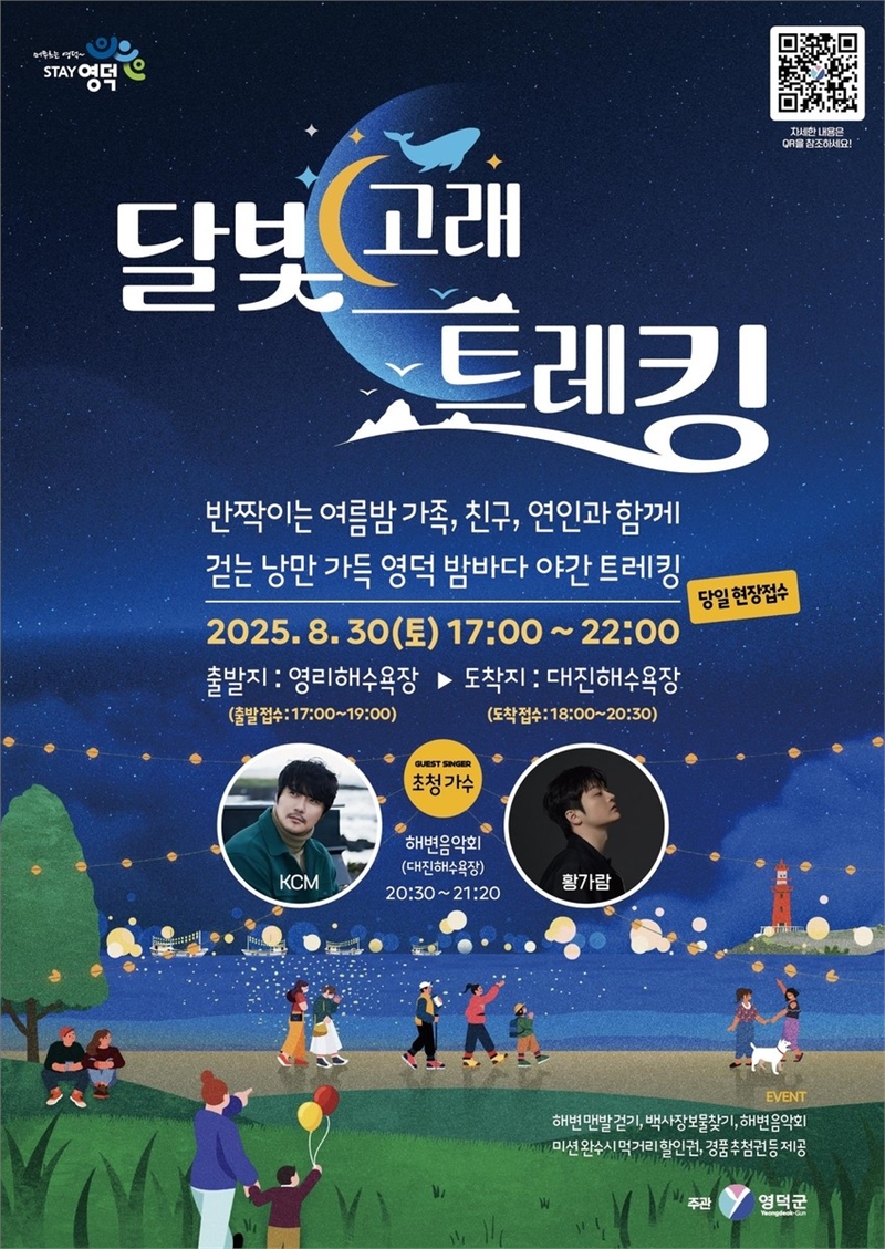 이번 행사는 어선 집어등 불빛과 달빛이 어우러진 영덕 밤바다를 배경으로, 자연과 함께하는 색다른 야간 트레킹의 즐거움을 선사할 예정이다.