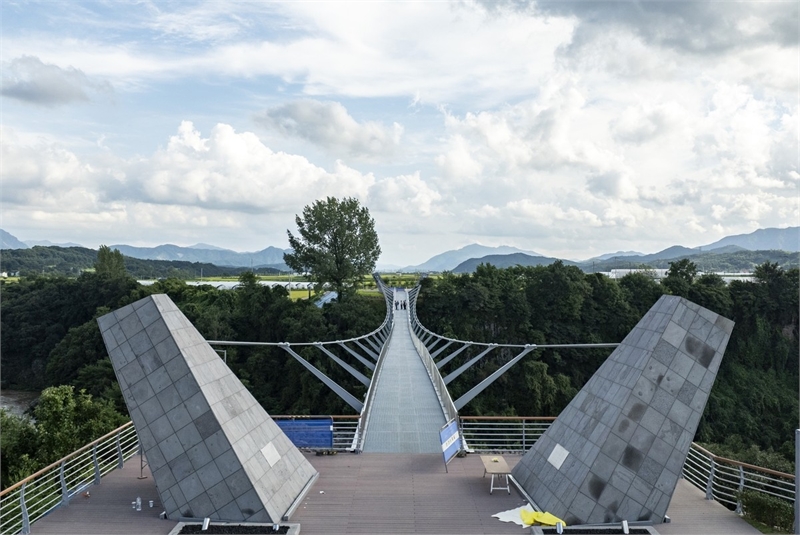 현무대교는 천연기념물인 한탄강 대교천 현무암 협곡을 가로지르는 무주탑 현수형 보도교로, 폭 2~3m, 길이 185m 규모다. 철원 동송읍 장흥리와 경기 포천시 관인면 냉정리를 연결하며, 화산활동이 빚어낸 협곡과 한탄강의 수려한 절경을 가까이서 감상할 수 있는 새로운 트래킹 명소로 기대를 모은다.