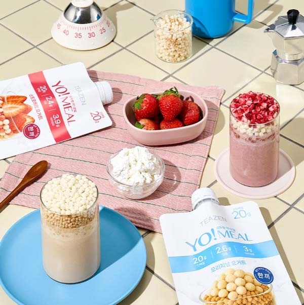 티젠 요밀은 콤부차 요거트 분말을 기반으로 단백질과 식이섬유를 채운 파우치형 단백질 쉐이크다. 물만 넣고 흔들면 한 끼 식사를 대체할 수 있는 요거트 베이스 단백질 음료가 완성돼 바쁜 일상에서도 간편하게 즐길 수 있다.