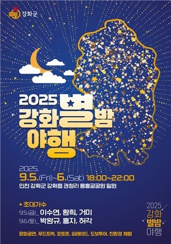 강화군(군수 박용철)은 오는 9월 5일부터 6일까지 이틀간 강화읍 용흥궁공원과 원도심 일원에서 ‘2025 강화별밤야행(夜行)’을 개최한다고 밝혔다.