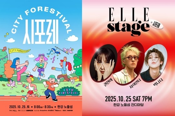 운동 프로그램 종료 후에는 ‘엘르 스테이지 X 시티포레스티벌 2025’ 콘서트가 열려 자이언티, 권진아, 빅나티가 감성 라이브 무대를 꾸민다. 노을 명소로 유명한 노들섬의 낭만적 풍경과 함께 관람객들에게 힐링을 선사할 예정이다.