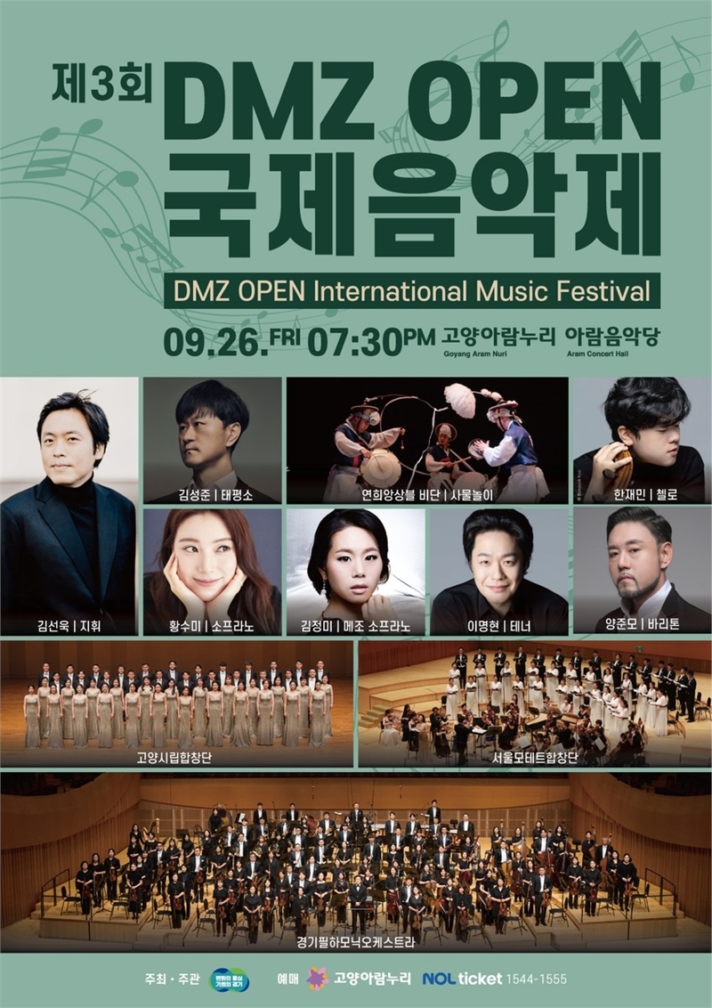 경기도 DMZ를 중심으로 열리는 ‘2025 DMZ OPEN 페스티벌’의 핵심 프로그램인 ‘DMZ OPEN 국제음악제’가 오는 26일부터 30일까지 고양아람누리에서 열린다. 올해는 ‘내일을 위한 교향곡 Symphony for Tomorrow’를 슬로건으로, 경기필하모닉·KBS교향악단·한경arte필하모닉·벨기에국립오케스트라가 차례로 무대에 오른다.