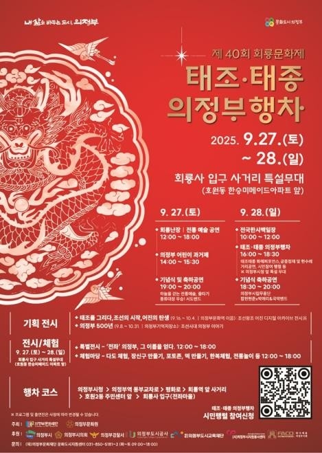 의정부시는 “올해 회룡문화제는 지역 역사와 전통을 되새기며 시민 참여형 축제로 운영된다”며 “왕실 행렬과 체험 프로그램을 통해 남녀노소 모두 즐길 수 있는 축제가 될 것”이라고 전했다.