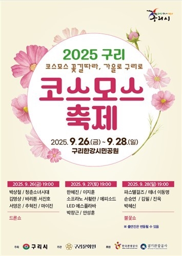 구리시(시장 백경현)는 오는 9월 26일부터 28일까지 3일간 구리한강시민공원에서 ‘2025 구리 코스모스 축제’를 개최한다고 밝혔다.