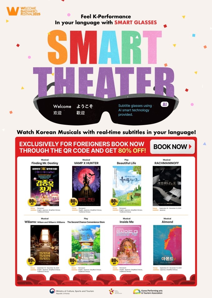 올해 처음 도입된 ‘스마트씨어터’는 외국인 관람객을 위한 맞춤형 서비스로, 공연 대본을 실시간 번역해 AI스마트 자막안경으로 제공한다. 외국인 관광객은 최대 80% 할인된 금액으로 공연을 관람할 수 있다.