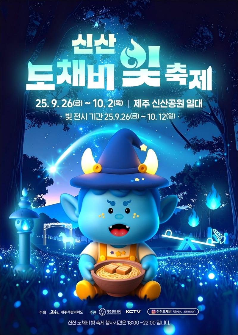 제주관광공사는 오는 26일부터 10월 12일까지 제주시 신산공원 북측광장에서 ‘2025 신산 도채비 빛 축제’를 개최한다고 밝혔다.