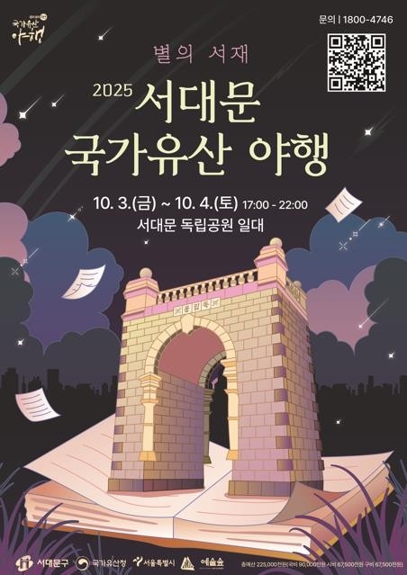 서대문구(구청장 이성헌)는 다음 달 3~4일 오후 5시부터 10시까지 서대문독립공원 일대에서 ‘별의 서재’를 주제로 ‘2025 서대문 국가유산 야행’을 개최한다고 밝혔다.