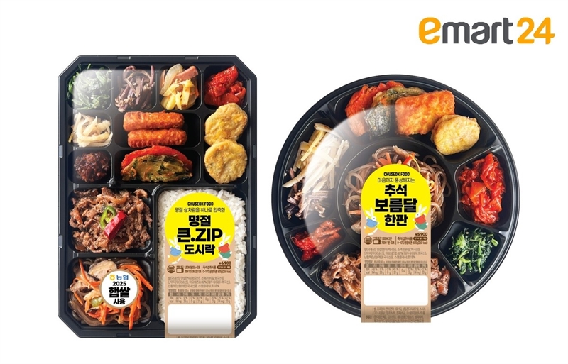 이마트24 역시 30일 ‘추석명절큰.Zip(집)도시락’과 ‘추석보름달한판’을 출시한다. 명절 음식을 직접 준비하지 않아도 다양한 먹거리를 즐길 수 있어 1인 가구 소비자의 수요를 충족할 것으로 기대된다.
