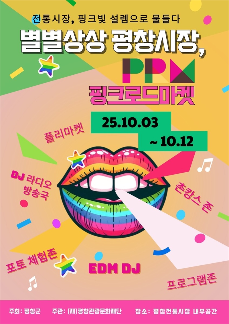 평창군과 평창관광문화재단은 오는 10월 3일부터 12일까지 평창읍 전통시장(올림픽 시장)에서 ‘2025 별별상상, 평창시장’을 개최한다고 밝혔다.