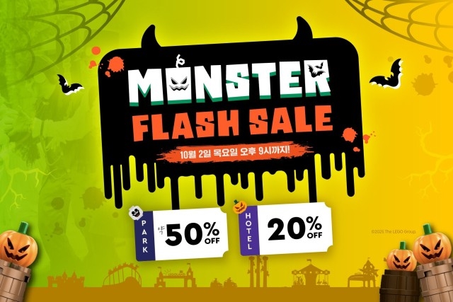 레고랜드 코리아 리조트가 다음달 2일 오후 9시까지 ‘몬스터 플래시 세일’을 진행한다. 이번 행사에서는 파크 1일 이용권을 정상가 대비 약 50% 할인된 3만3,000원에 구매할 수 있다.