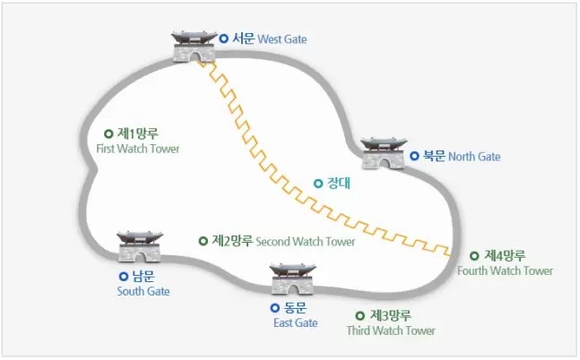 성곽 위에 오르면 낙동강과 부산 도심, 멀리 바다까지 시야가 트이며 요충지로 쓰였던 이유를 단번에 알 수 있다. 대표 탐방 코스는 동문에서 출발해 3망루와 4망루를 거쳐 북문으로 이어지는 길로, 숲길과 암릉이 어우러져 약 1시간 30분이 소요된다. 해발 620m 주 능선에 자리한 4망루 전망대에서는 동래 일대와 낙동강 하구의 장쾌한 풍경을 감상할 수 있다.