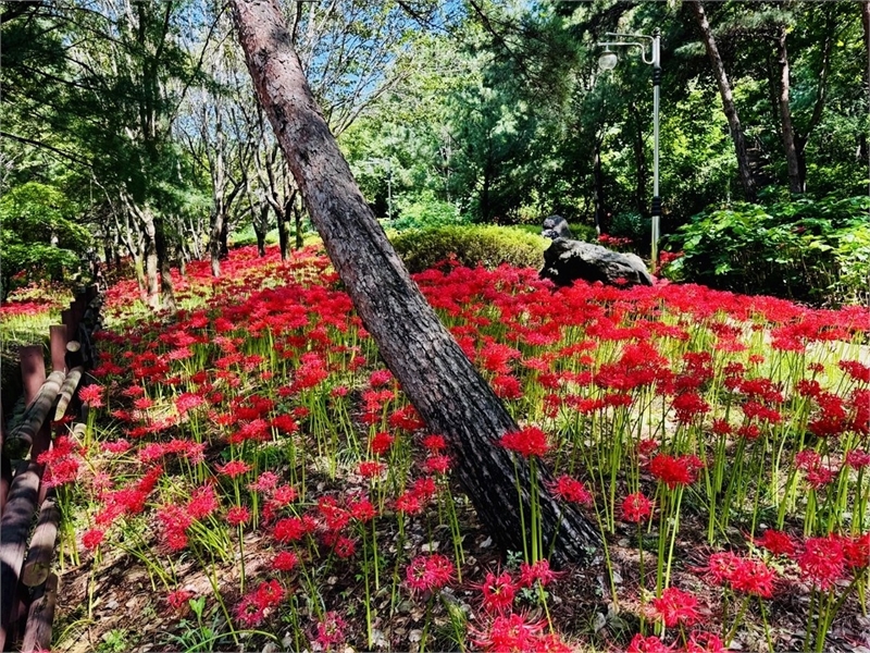 동구 가오근린공원(대성동 132)은 가족 단위 나들이 명소로 산책로를 따라 꽃무릇이 이어지며 정자와 의자, 놀이터가 함께 조성돼 있다. 최근 친환경 산책로와 157m 맨발산책로, 유아숲체험원, 곤충호텔, 생태학습장 등 체험 요소를 갖춰 아이들과 함께 찾기 적합하다.