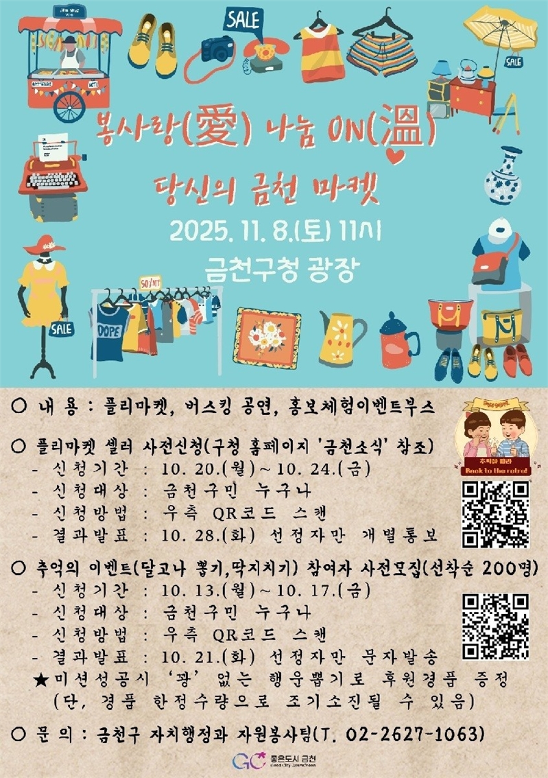 유성훈 금천구청장은 “이번 행사는 자원봉사자와 주민이 함께 만드는 참여형 나눔 축제로, 세대 간 소통과 나눔의 선순환을 경험할 수 있는 뜻깊은 자리”라며 “기후위기 대응과 자원순환 실천의 생활문화를 확산시키는 계기가 되길 바란다”고 전했다.