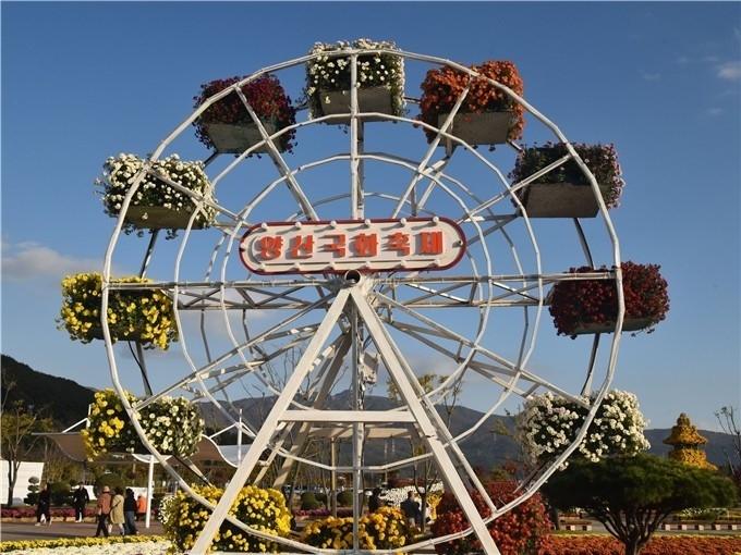또한 ‘2026년 양산방문의 해’를 홍보하기 위해 양산시 관광 캐릭터 ‘호잇’과 ‘뿌용’을 형상화한 조형물이 함께 전시돼 포토존 역할을 할 예정이다. 황산공원 곳곳에는 코스모스, 백일홍, 박, 댑싸리 등 가을꽃도 만개해 국화와 어우러진 다채로운 가을 정원을 이룬다.