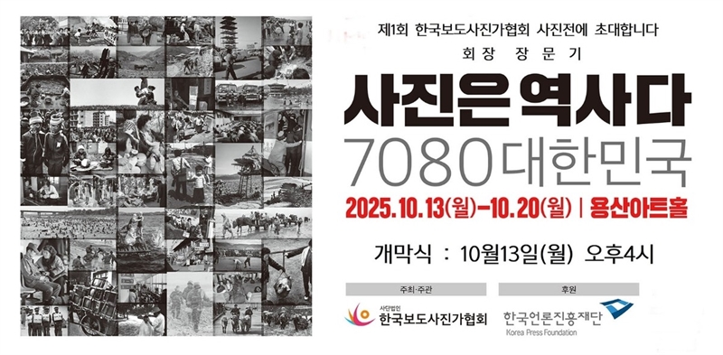 한국보도사진가협회(회장 장문기)는 13일부터 20일까지 서울 용산아트홀에서 ‘사진은 역사다. 7080 대한민국’ 보도사진전을 개최한다고 밝혔다.
