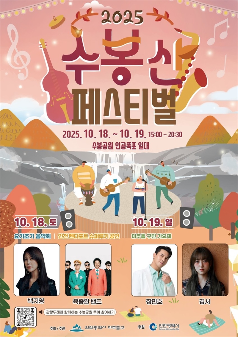 이영훈 미추홀구청장은 “수봉공원은 미추홀구의 대표 명소로 가을 풍경이 아름답다”며 “가족, 친구, 연인과 함께 수봉공원을 거닐며 음악과 체험이 어우러진 축제를 즐기시길 바란다”고 말했다.
