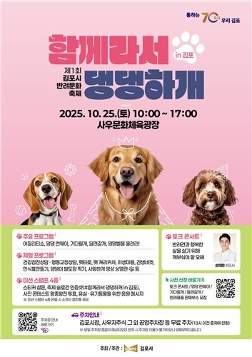 김포시(시장 김병수)는 반려동물과 시민이 함께 어우러지는 문화 축제 ‘제1회 김포시 반려문화축제 함께라서 댕댕하개 in 김포’를 오는 10월 25일 사우문화체육광장(사우동)에서 개최한다고 밝혔다.