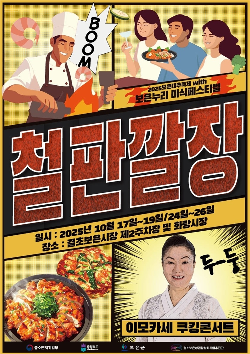 충북 보은군은 오는 10월 17~19일과 24~26일, 총 6일간 ‘2025 보은대추축제’와 연계해 ‘보은누리 철판깔장(場)’ 행사를 개최한다고 밝혔다. 이번 행사는 지역 상권과 전통시장의 활력을 높이기 위한 상권활성화 프로젝트의 일환으로, 결초보은시장 제2공영주차장 및 보은전통시장, 결초보은시장, 화랑시장 일대에서 다채롭게 펼쳐진다.