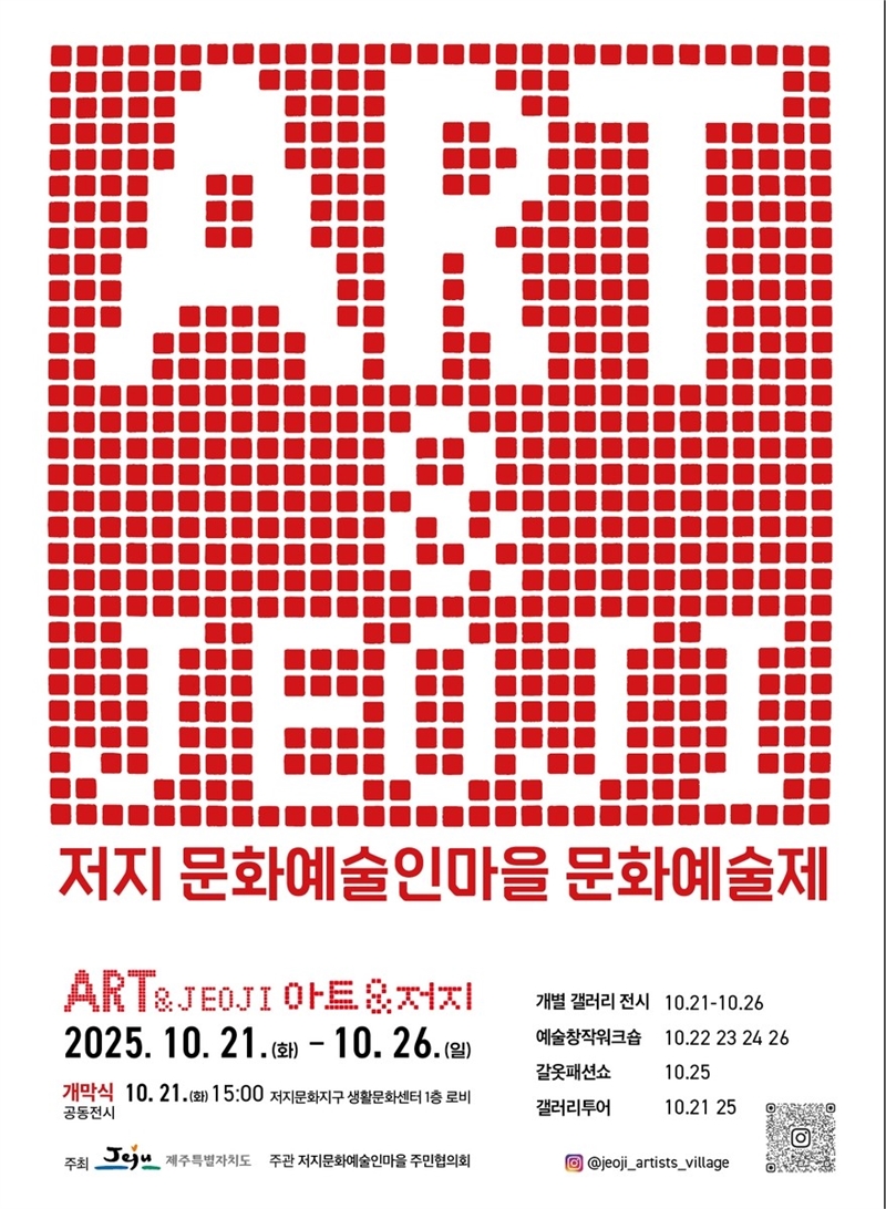 제주시 한경면 저지문화예술인마을에서 오는 21일부터 26일까지 ‘아트 앤 저지(ART&JEOJI) 2025’ 행사가 열린다.
