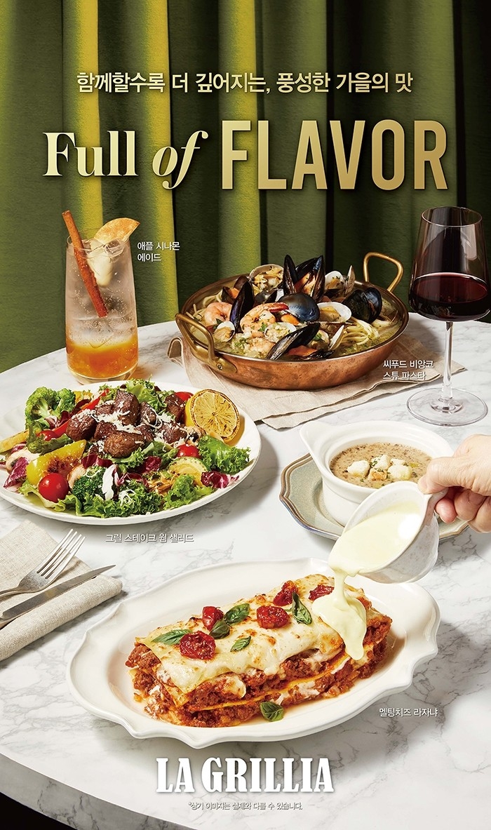 이번 메뉴는 ‘함께할수록 더 깊어지는, 풍성한 가을의 맛(Full of FLAVOR)’을 테마로, 제철 식재료의 깊은 풍미를 살리고 라그릴리아만의 정통 레시피를 더해 다채로운 맛을 완성한 것이 특징이다.