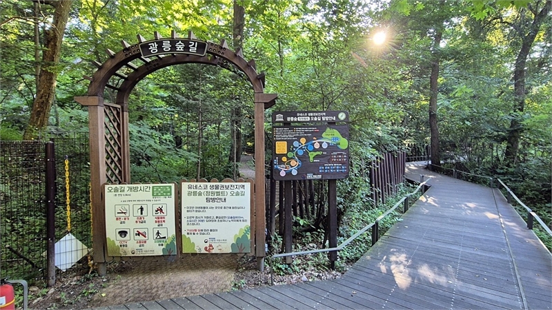 광릉숲 산책길은 2019년 봉선사천을 따라 광릉숲 둘레를 잇는 3.2㎞ 구간에 데크길과 흙길로 조성된 인기 탐방 코스다. 매년 90만 명 이상이 찾을 만큼 수도권 대표 생태 산책로로 사랑받고 있다.