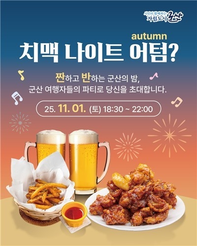 깊어가는 가을밤, 군산시가 탁 트인 야외에서 즐기는 특별한 야간 행사 ‘치맥나이트 어텀(Autumn)’을 오는 11월 1일 저녁 군산 내항 일원에서 개최한다.