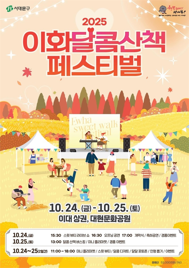 이성헌 서대문구청장은 “대학문화와 지역 상권, K-콘텐츠가 결합된 이번 ‘이화 달콤산책 페스티벌’이 젊음과 활력이 넘치는 지역 대표 행사로 자리 잡길 기대한다”고 말했다.