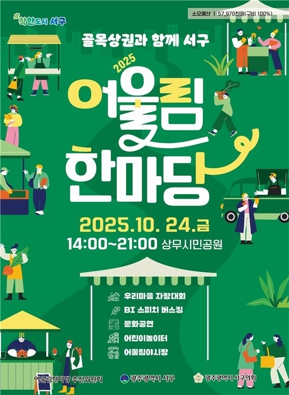 24일 상무시민공원에서는 ‘골목경제와 함께서구’를 주제로 한 ‘어울림한마당’이 열린다. 18개 동 마을단체와 골목 상인들이 함께 참여해 상생과 화합의 의미를 나누는 이 행사는 ‘주민자치의 힘으로 살아나는 골목경제’를 주제로 한 개막 퍼포먼스와 어울림야시장 등을 통해 지역 골목경제의 활력을 되살릴 예정이다.