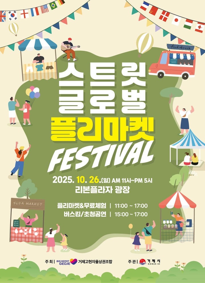 경남 거제시가 후원하고 거제고현자율상권조합이 주최하는 글로벌 거리축제 ‘스트릿 글로벌 플리마켓 페스티벌(Street Global Flea Market Festival)’이 오는 26일 오전 11시부터 오후 5시까지 고현동 리본플라자 광장에서 열린다.