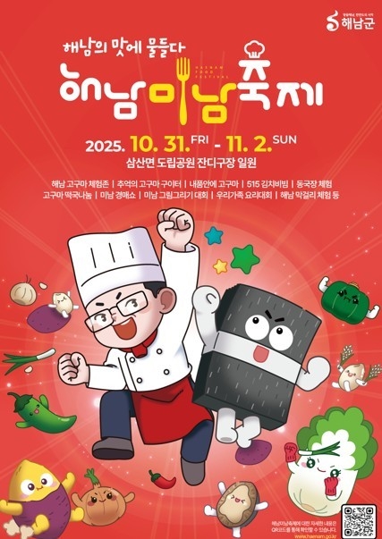 ‘미남축제’는 해남의 풍부한 농수특산물과 먹거리를 활용해 지역의 맛과 멋을 알리는 대표 가을 행사로, 올해는 ‘해남의 맛에 물들다’를 주제로 열린다.