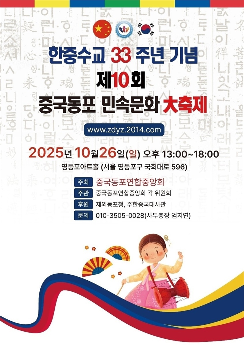 한중수교 33주년을 기념하는 ‘제10회 중국동포 민속문화 대축제’가 오는 26일 서울 영등포아트홀에서 열린다.