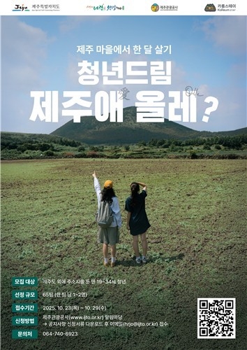 참가자는 제주에 머물며 전통시장 방문, 농촌 체험, 문화예술·역사 탐방 등 다양한 지역자원을 직접 체험하고, 개인 사회관계망서비스(SNS)를 통해 제주의 매력을 홍보하게 된다. 모집 대상은 만 19~34세의 도외 지역 청년으로, 21일 이상 제주에 체류 가능한 사람이며, 팀당 최대 2명으로 구성해 총 65팀을 선발할 예정이다.