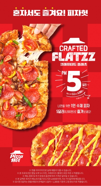 한국피자헛이 1인 가구 증가와 배달·포장 중심의 소비 트렌드에 발맞춰 새로운 1인 전용 피자 카테고리 ‘크래프티드 플래츠(Crafted Flatzz)’를 공식 출시하고, 이를 기념해 특별 할인 이벤트 ‘5!타임세일’을 진행한다. 이번 신제품은 ‘정성을 담아 만든(Hand-crafted)’ 피자라는 의미를 담고 있으며, 손으로 빚은 듯한 자연스러운 타원형 도우와 얇고 바삭한 플랫 스타일의 식감이 특징이다.